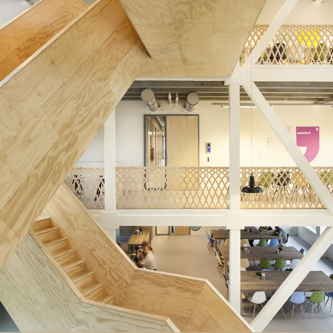 Geïnspireerd door de huidige collectieve mindset, hebben we de architecturale typologie WeSpace ontwikkeld als een gemeenschappelijke sociale ruimte en het kloppende hart van elk project. Het fungeert als de 'lijm' die individuen in elk gebouw bindt en zinvolle interactie mogelijk maakt. Door fysiek ruimte te delen, verbinden bewoners zich niet alleen sociaal en professioneel met elkaar, maar dragen ze ook trots bij aan de gedeelde identiteit van het gebouw en de gemeenschap. Wij geloven dat onze interventies een positieve invloed hebben op menselijk gedrag. In een tijd waarin werk steeds onafhankelijker wordt van tijd en plaats, ligt de toegevoegde waarde van het gebouw in het creëren van ruimtes voor interactie.