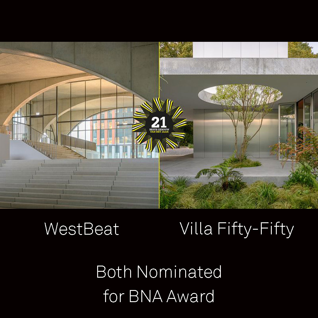 Zowel Westbeat als Villa Fifty-Fifty zijn genomineerd voor de BNA Best Building of the Year Award! Deze prestigieuze prijs gaat naar het gebouw met de meeste toegevoegde waarde voor mens en samenleving.