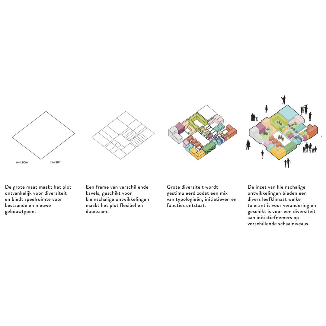 Gebaseerd op ons Cityplot-concept integreert dit gemengde stedelijke, landschappelijke en sociale ontwikkelingsplan het bestaande industriële erfgoed om een eigentijdse nieuwe identiteit voor het gebied te creëren. Binnen Wisselspoor creëren verschillende sferen een veranderende dynamiek en complexiteit; het stadspark contrasteert met intieme pleinen en hofjes en het rauwe karakter van het spoorpark en groenstrook langs de Daalsedijk. Het plan sluit aan bij de algemene maatschappelijke ambities voor minder autoverkeer, meer maatschappelijke participatie en een hoge kwaliteit van de openbare ruimte.