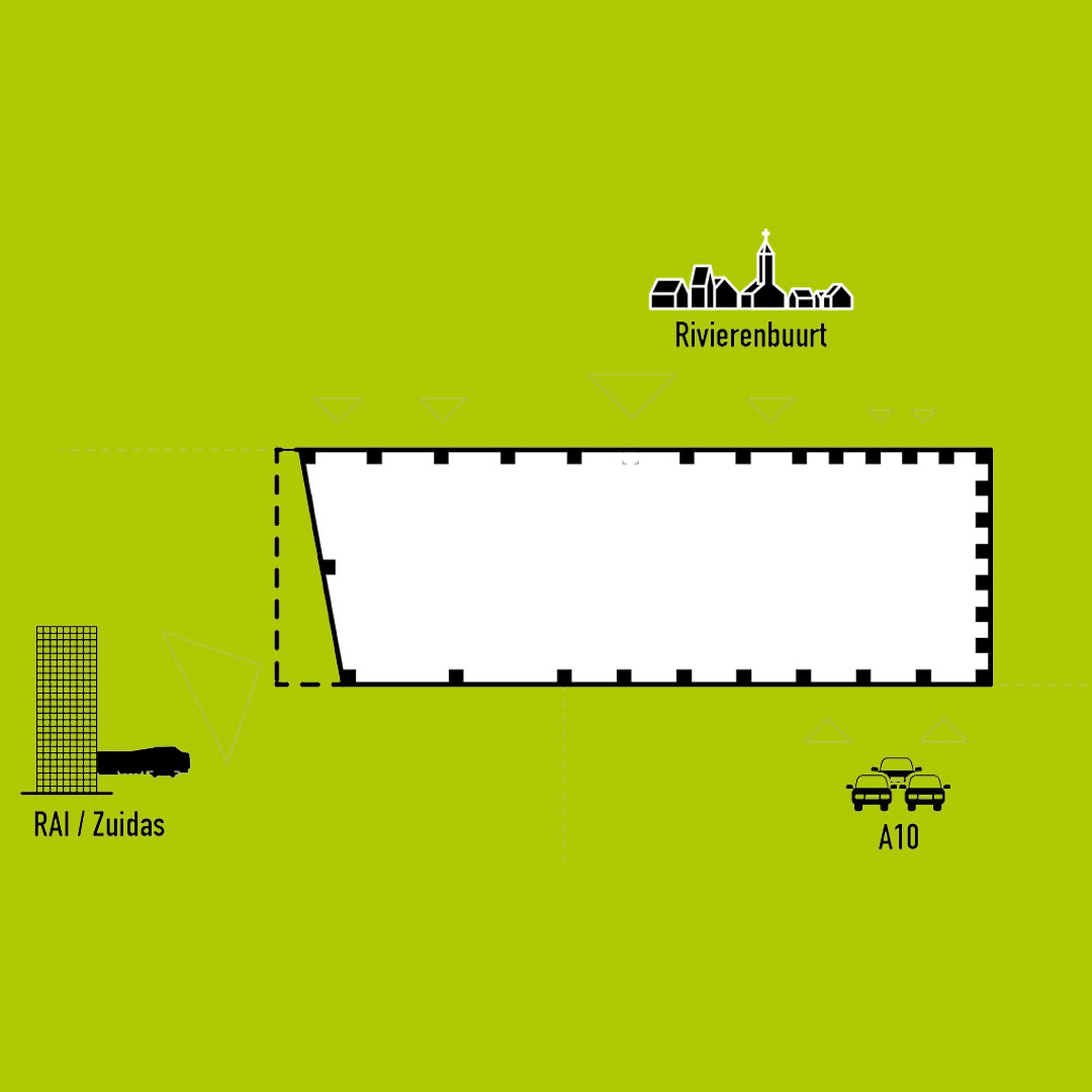 Het kavel voor de tender ligt pal naast de A10, tussen de zakelijke Zuidas en de rustige Rivierenbuurt. REBEL is programmatisch en architectonisch zowel aanvullend op, als contrasterend met beide sferen. De stedelijke dynamiek ter plekke is aangegrepen om er een krachtig, flexibel en duurzaam gebouw te ontwerpen voor een doelgroep van nieuwsgierige en ambitieuze wereldbestormers.